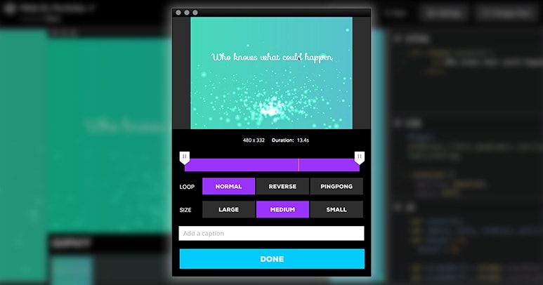 GIPHYは画面の動きを録画し、GIF に変換するための Mac 用アプリ。無料で使えます。GIPHY のいいところは、なんと言っても動きが滑らか!そして繰り返し表示の設定や、動画の開始・終了ポイントの編集、キャプション(英数字のみ)まで加えられます。ただ、滑らかな動きを実現した分、完成した GIF は 1MB はゆうに超え、かなり容量がかさんでしまいます…。利用を諦めかけたその時、発見したのが「画像をアップロードする」という方法。ローカルに保存するのではなく、GIPHY のサイト上にアップロードしておくと、サイト上で埋め込みコードが生成されます。あとはコピペでブログなどに貼り付けて公開できるので、シェアするのも楽ちん!「画像を公開はしたくない…」という方、ご安心ください。GIPHY にアップロードした GIF はすべて非公開にできますし、アカウント自体を非公開にもできちゃいます。