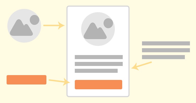 こちらの図を見てみると、画像の角丸やテキストのフォント、ボタンのスタイルはそれぞれ独立してデザイン・コーディングされています。これらを組み合わせると「コンポーネント」としてひとまとまりになるわけですね。