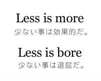 ミニマルデザインを考えるときによく使われる言葉「Less is more(少ない事は効果的だ)」。装飾が多すぎるとどれも目立たなくなる、無駄を削ぎ落した方がより美しく効果的であるという考えです。これに対し「Less is bore(少ない事は退屈だ)」という皮肉な言葉もあったりします。美しいミニマルデザインと退屈な間抜けデザインは紙一重。その違いを考えてみましょう。