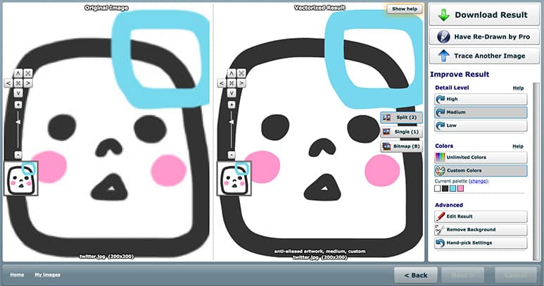Vector Magicは JPEG、GIF、PNG 形式の画像をベクター画像に変換し、EPS、SVG、PDF 形式でダウンロードできるオンラインツール。ダウンロードにはメールアドレスが必要です。