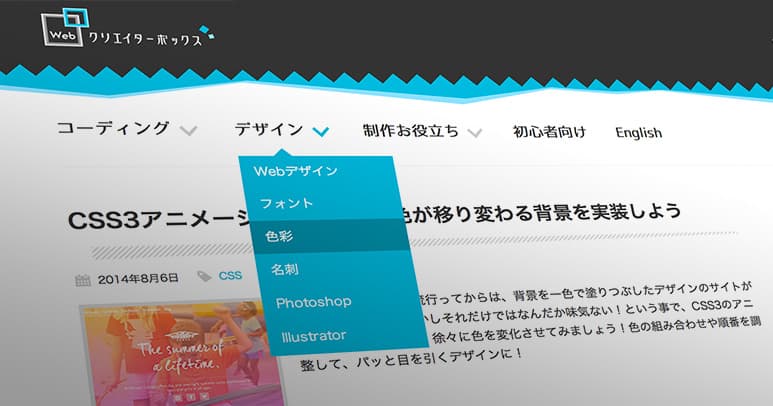 約2年半ぶりにWebクリエイターボックスのテーマをリニューアル!という事で、変更点をザックリと紹介します。とは言え全体のデザイン自体はあまり変わっておらず、細かいところや内部の修正・更新がメインとなっています。ちなみにブラウザーはChrome, Safari, Firefoxの最新版、IE11対応。Webクリエイターボックスに訪問するユーザーで、IE10以下を利用の割合は1.5%をきっていたのでバッサリ捨ててます。古いブラウザーを利用の方はアップデートしましょう ;)