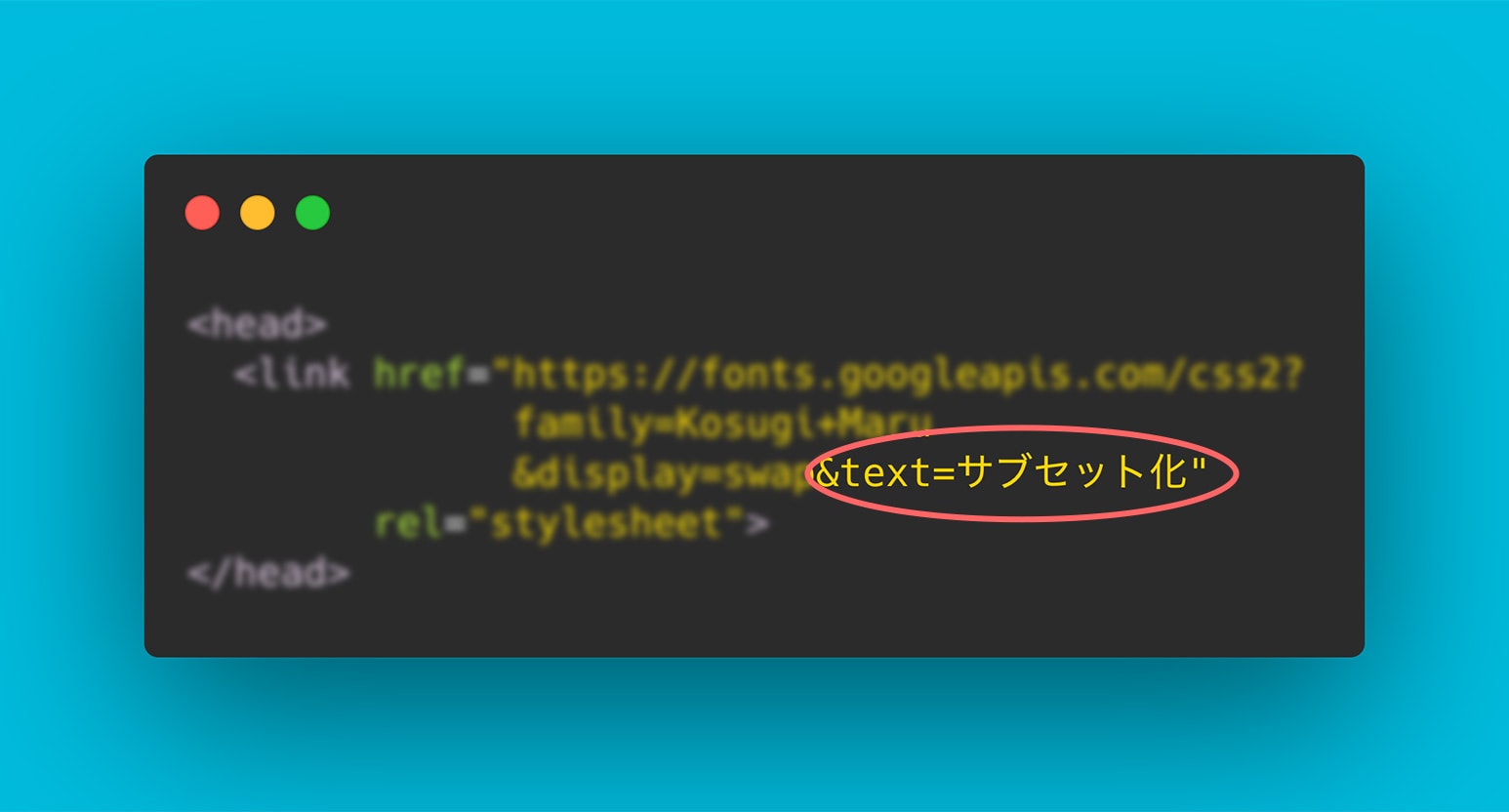 href="https://fonts.googleapis.com/css2?family=Kosugi+Maru&display=swap&text=Webフォントを使おう"