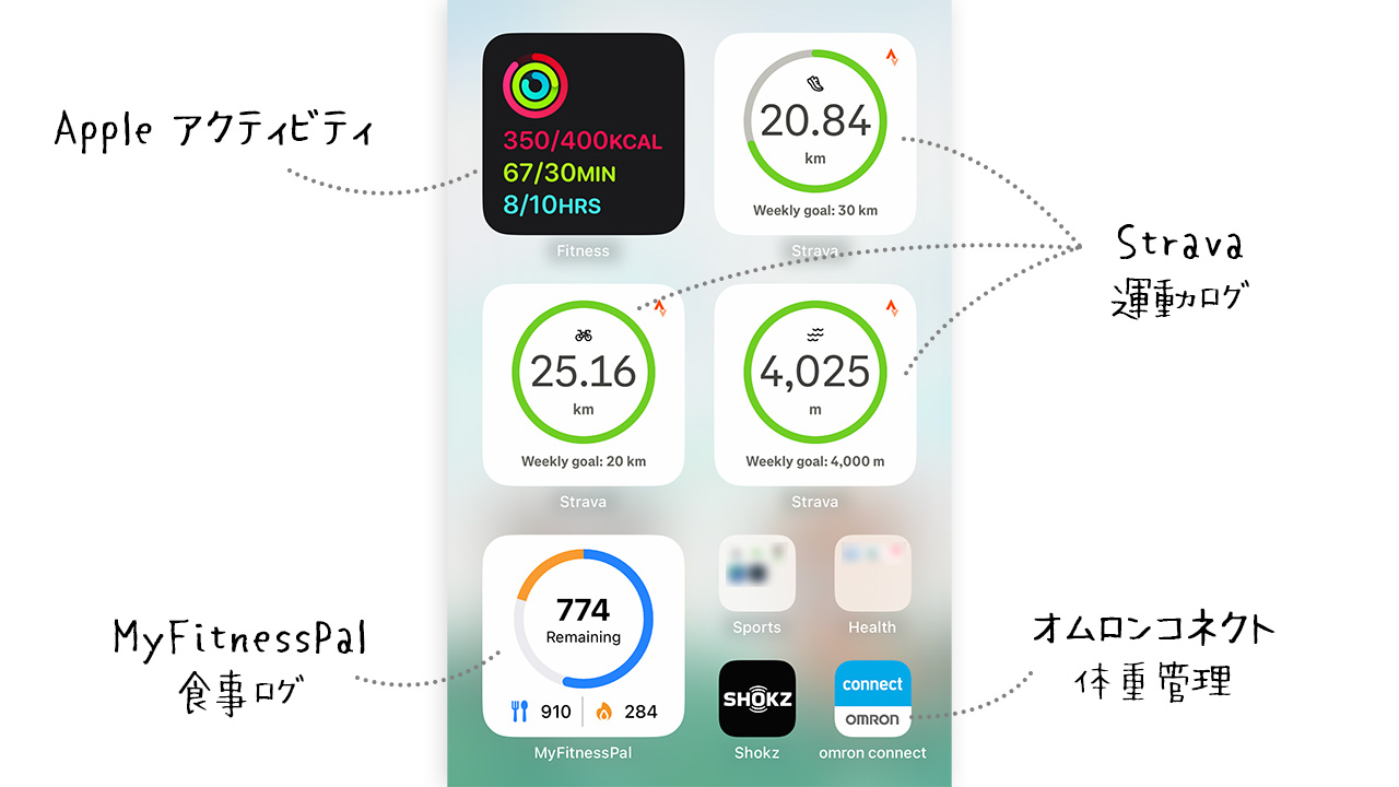 iPhoneのウィジェット機能を活用して、常に進捗が目に入るようにホーム画面をカスタマイズしました。