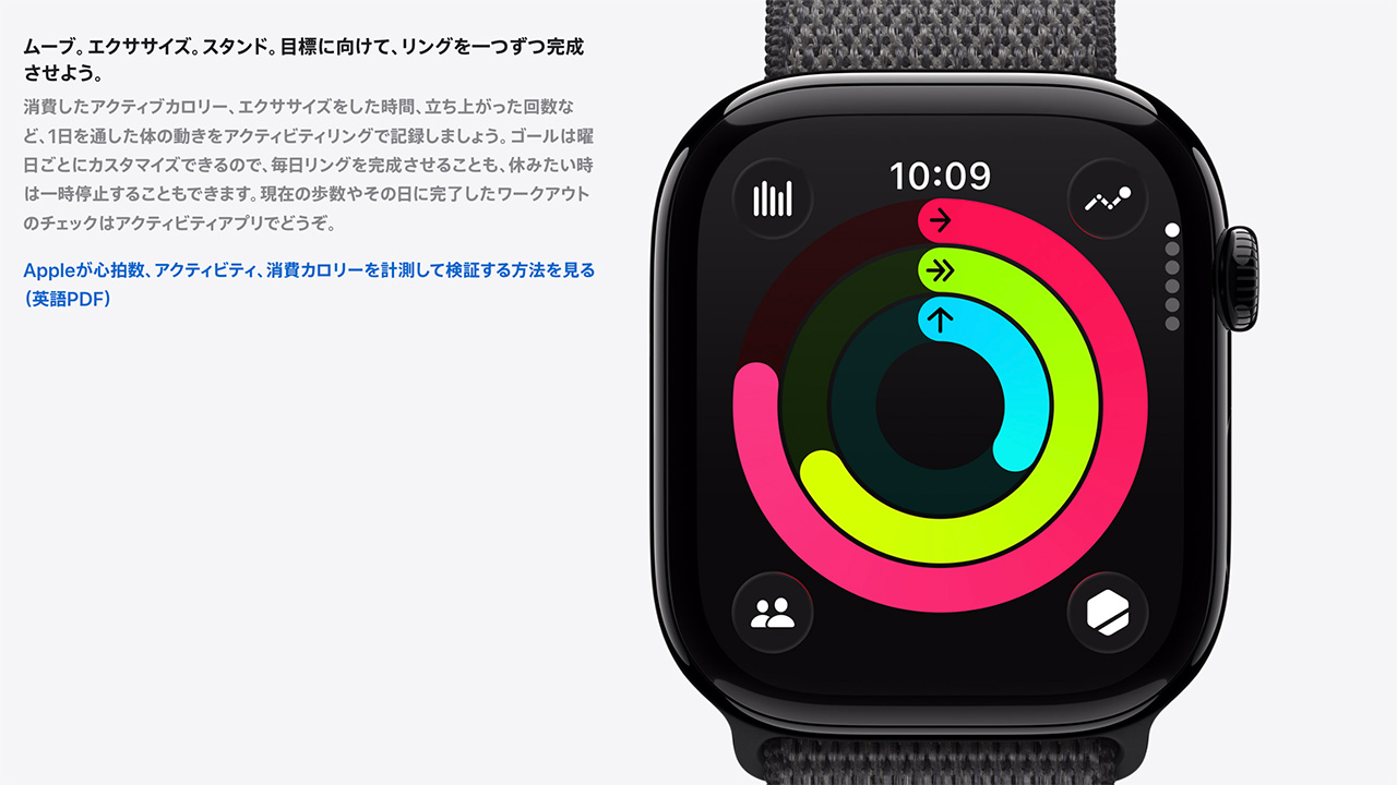 私がいつも身につけているApple Watch。その魅力の1つが健康管理です。Apple Watchには「アクティビティ」という機能があり、以下の3つのリングを閉じる(完成させる)ことで、健康的な生活を可視化できます。