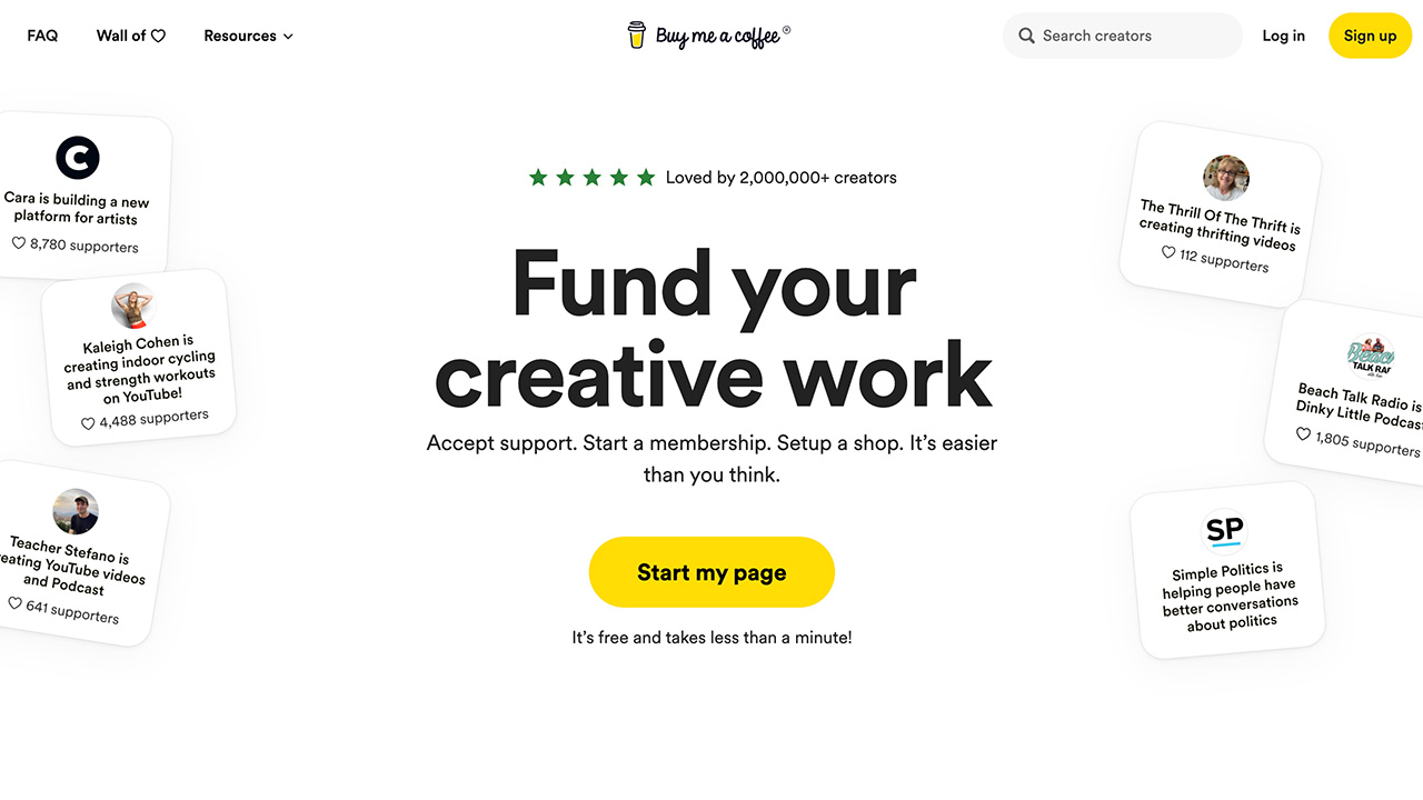 直訳すると「コーヒーを一杯ご馳走してね」。「この記事すごく助かった!」「このツール便利だね!」と思ってくれたユーザーが、コーヒー1杯分くらいの少額($3〜)を、クレジットカードなどでサクッとサポートできるサービスです。