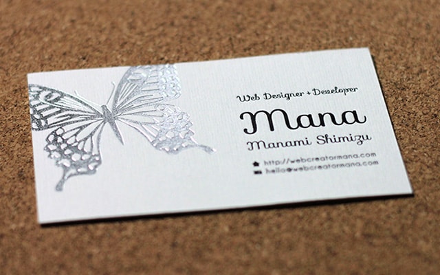 まずは私、Mana の新しい名刺です。半透明の物を長く使っていましたが、ポートフォリオサイトをリデザインしたのにあわせてシンプルな感じに一新。他にもうワンパターン作成したのですが、印刷が間に合わなかったので、また別の記事で詳しく紹介しようと思います。