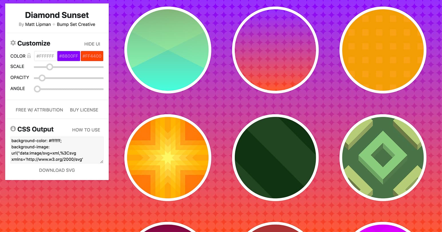ブラウザー上でカスタマイズできるSVGアイコン、背景パターン、イラスト