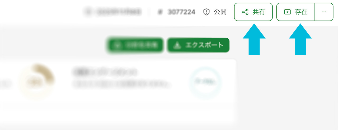 管理画面の右上「共有」ボタンからQRコードやリンクを共有したり、「存在」(多分プレゼンの誤訳)でQRコードを含んだ質問一覧画面を表示できます。まずはそのQRコードやリンクを表示させ、
