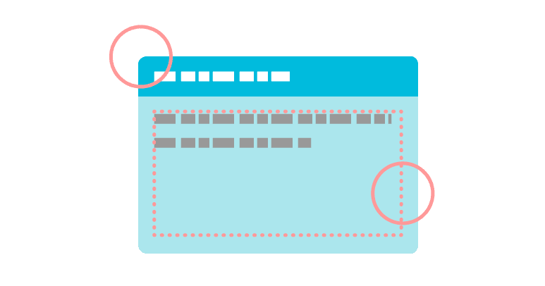 ボックスの縁と文章の間に余白がないと、非常に読みづらく、デザイン的にも美しくなくなります。余白は文字のサイズによって変わってきますが、最低でも文字サイズの 1〜1.5 倍程度はとりたいところ。例えば文字サイズが 16px だった場合、20px ほどの余白があればスッキリと読みやすくなります。デザインがなぜかごちゃごちゃして見えちゃう…そんな時は、まず余白を取ることに注力してみましょう。